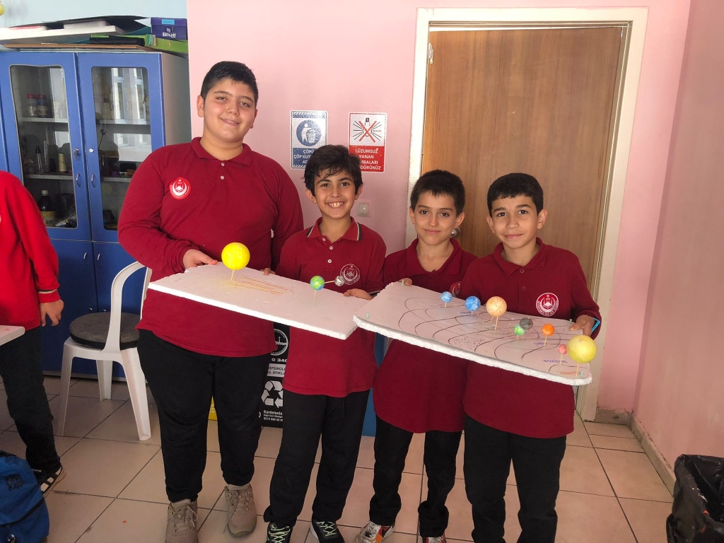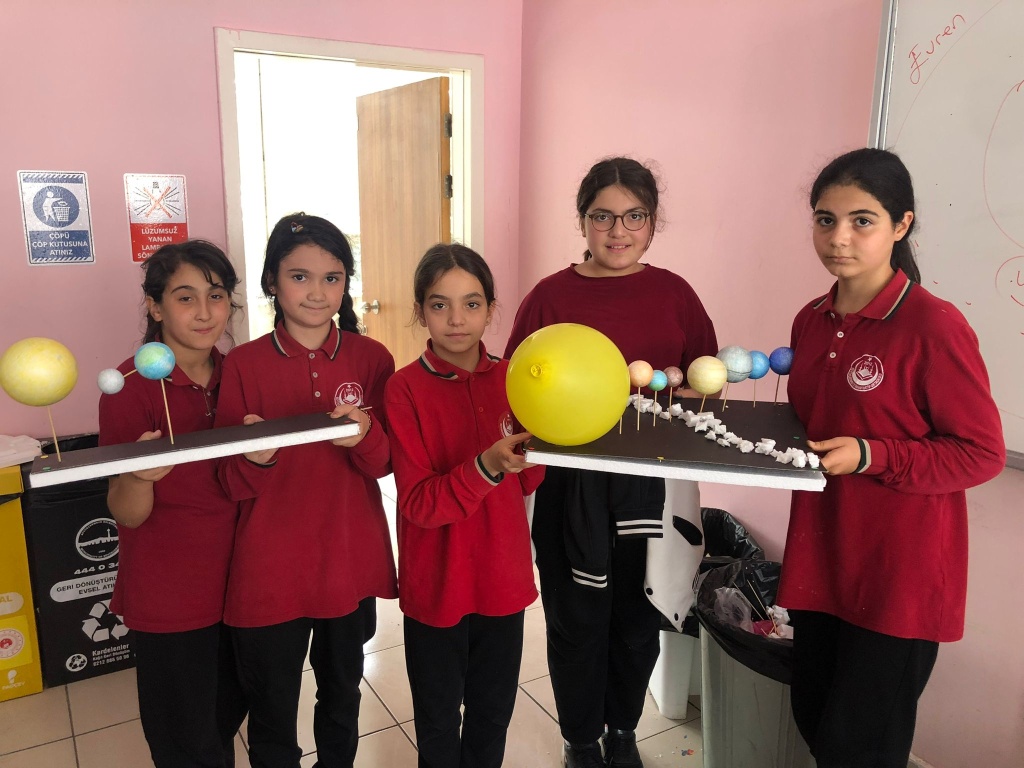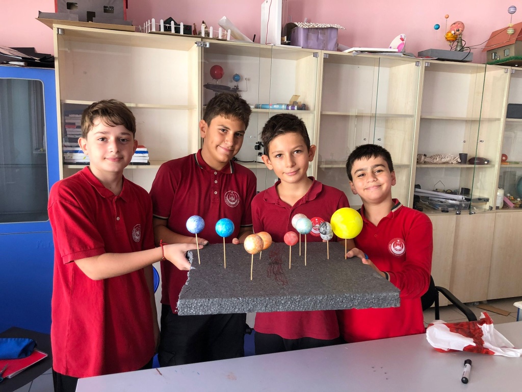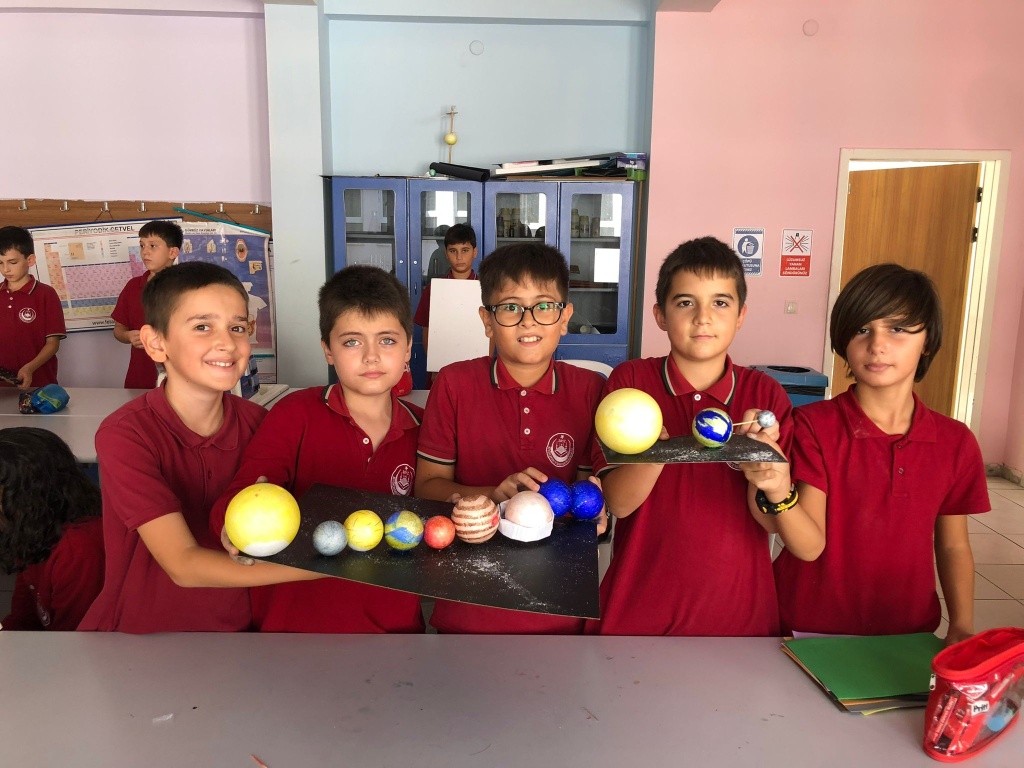 Derslerimizi Maarif Modeline uygun olarak öğrencilerimize işlemeye devam ediyoruz. 6. sınıf öğrencileri ile Güneş Sistemi ve Tutulmalar Modeli yaptık.